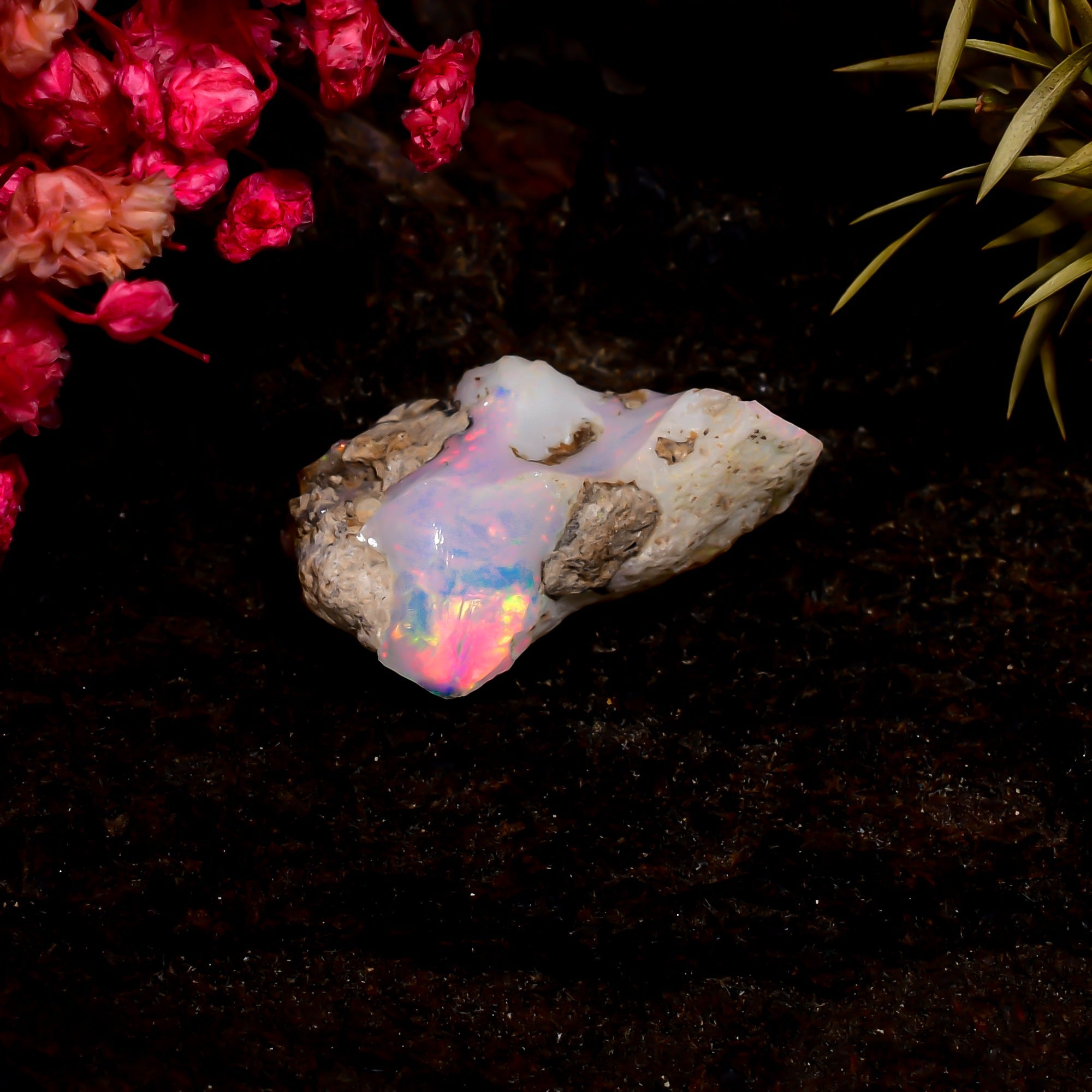 This authentic raw Ethiopian opal offers vibrant color play and natural brilliance, making it a valuable addition to any gemstone collection.