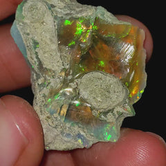 This authentic raw Ethiopian opal offers vibrant color play and natural brilliance, making it a valuable addition to any gemstone collection.
