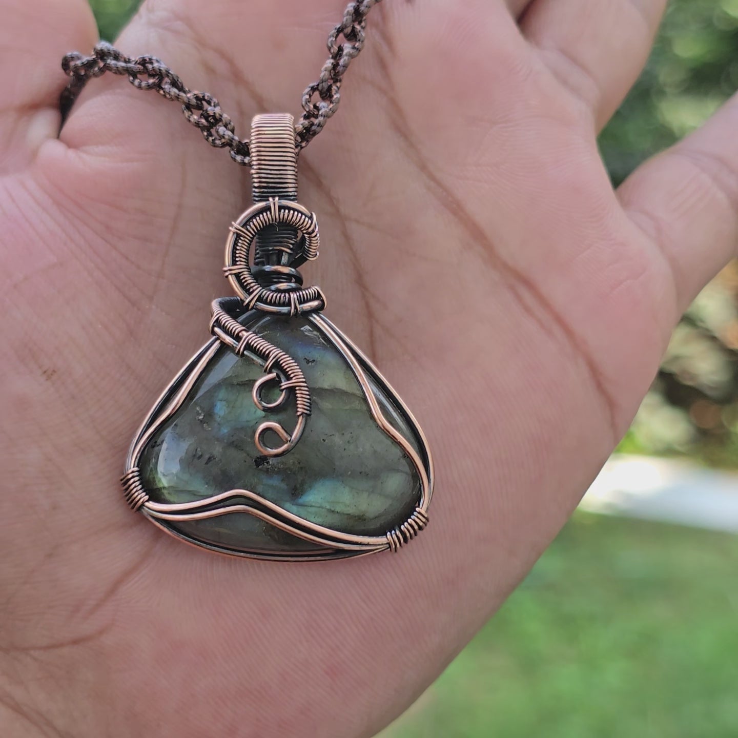 Labradorite Gemstone Handmade Copper Wire Wrap Chain Pendant 2.16"
