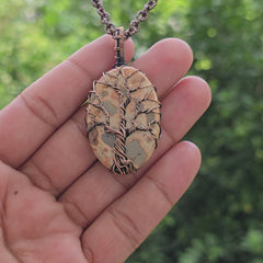 Leopard Skin Jasper Gemstone Handmade Copper Wire Wrap Chain Pendant 2.36" Sunkarton
