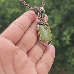 Lizarite Gemstone Handmade Copper Wire Wrap Chain Pendant 2.36"