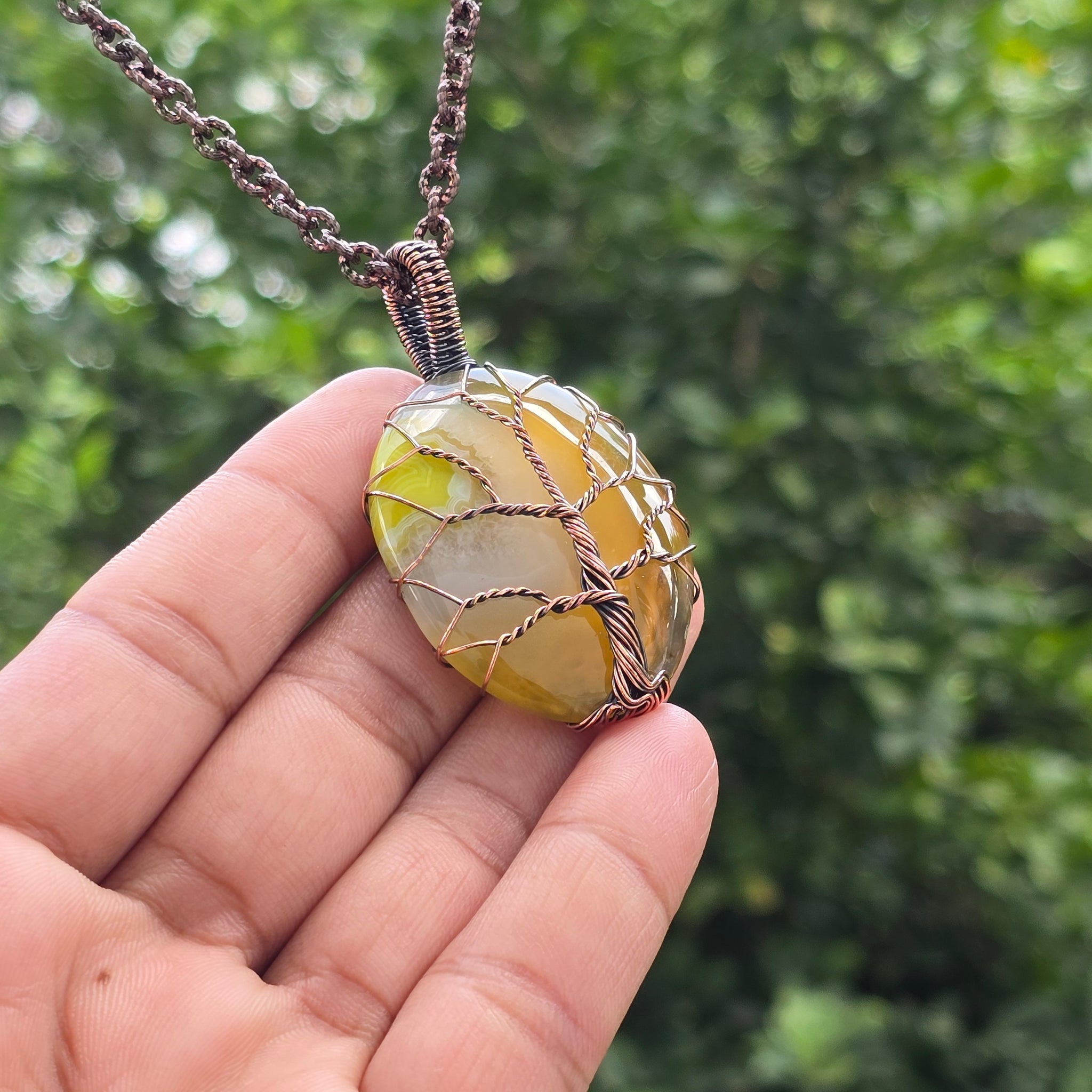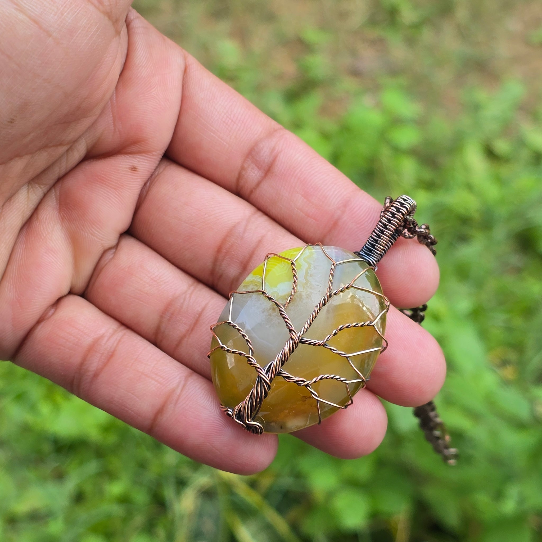 Onyx Gemstone Handmade Copper Wire Wrap Chain Pendant 2.36" Sunkarton