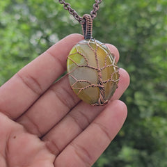 • This stunning Labradorite Gemstone Copper Wire Wrapped Pendant is a handcrafted piece of bohemian gemstone jewelry. The calming blue hues of Chalcedony are beautifully complemented by the rich tones of oxidized copper wire, making this pendant a perfect mix of elegance and natural beauty.