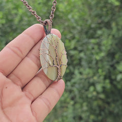 Onyx Gemstone Handmade Copper Wire Wrap Chain Pendant 2.55"
