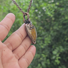 Plume Agate Gemstone Handmade Copper Wire Wrap Chain Pendant 2.36" Sunkarton