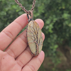 Polychrome Jasper Gemstone Handmade Copper Wire Wrap Chain Pendant 2.75"