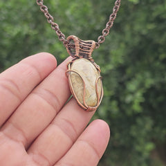 Root Palm Agate Gemstone Handmade Copper Wire Wrap Chain Pendant 1.96" Sunkarton