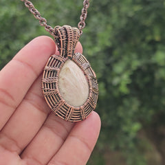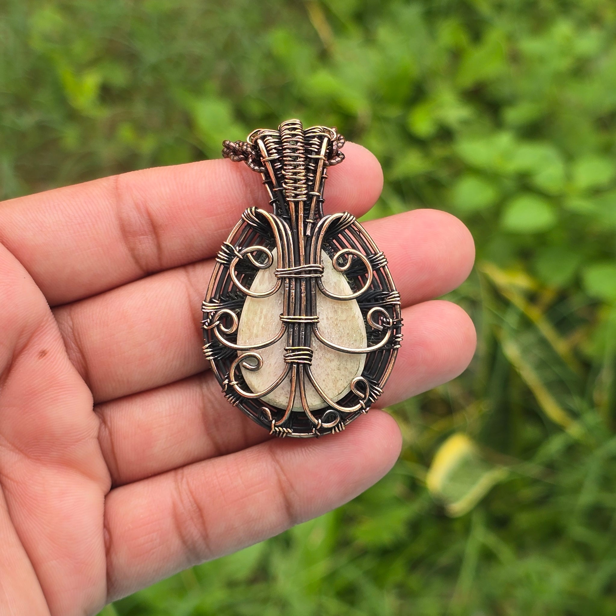 Scolecite  Gemstone Handmade Copper Wire Wrap Chain Pendant 2.16" Sunkarton