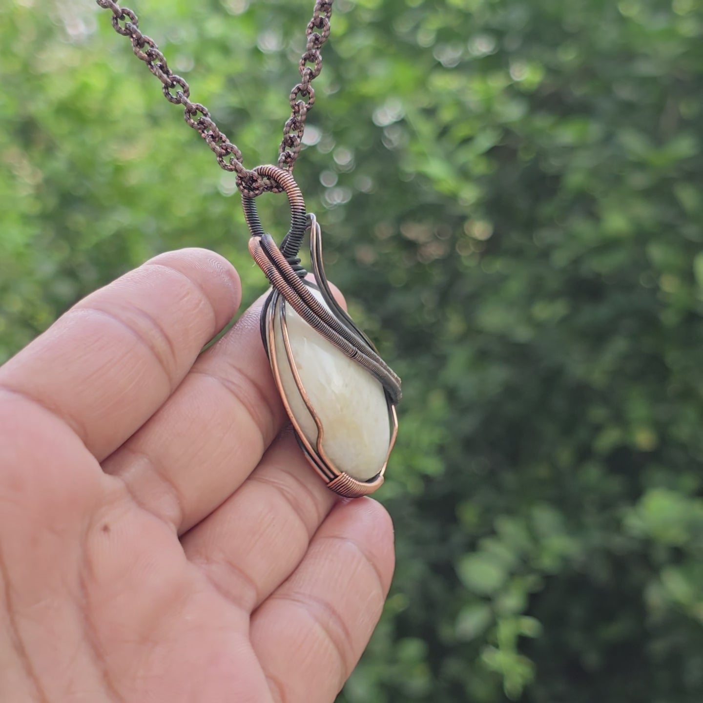 Scolecite Gemstone Handmade Copper Wire Wrap Chain Pendant 2.36"