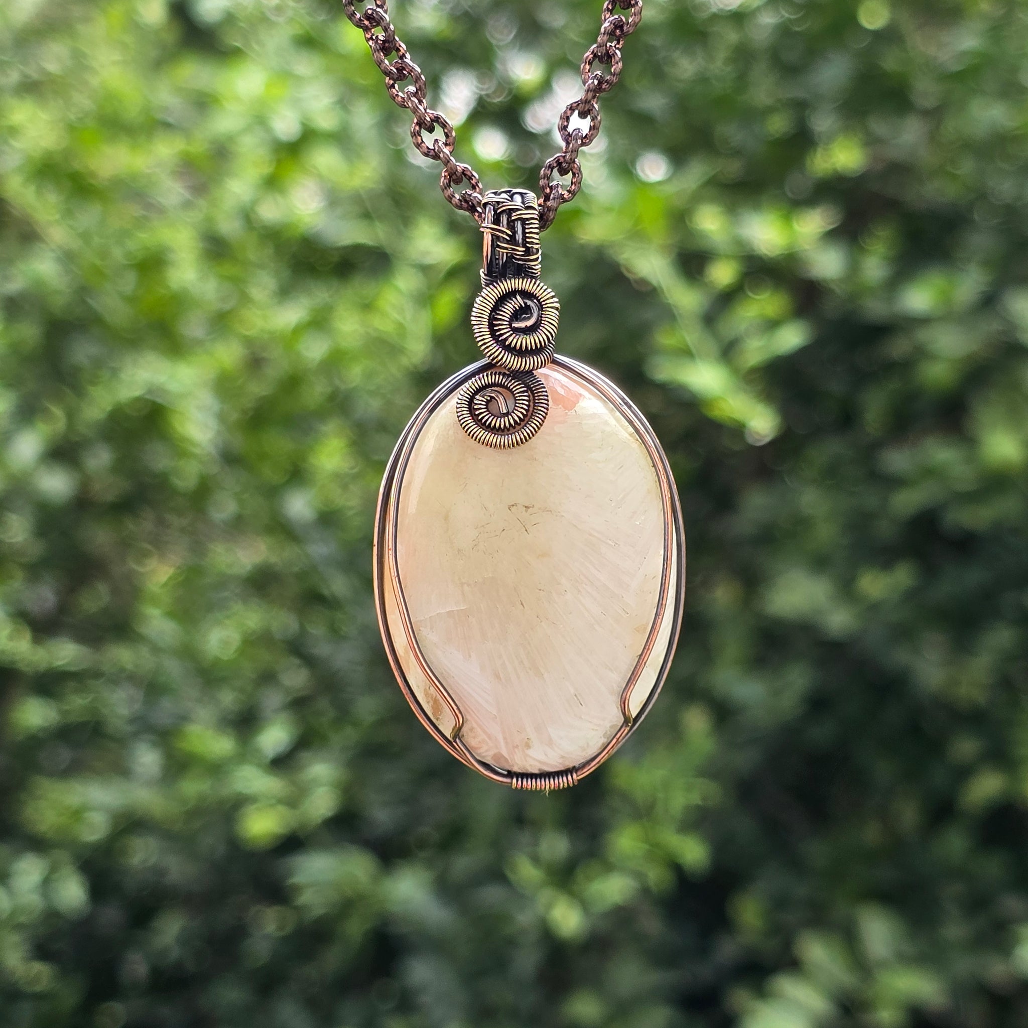 Scolecite Gemstone Handmade Copper Wire Wrap Chain Pendant 2.55"