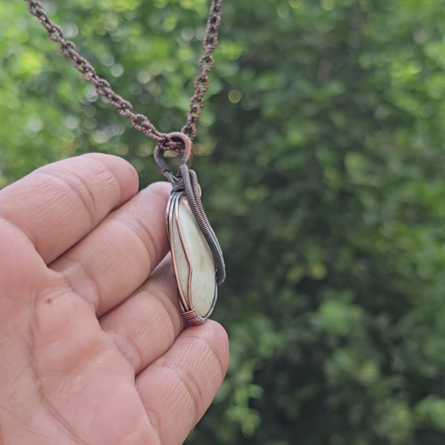 Scolecite Gemstone Handmade Copper Wire Wrap Chain Pendant 2.55"