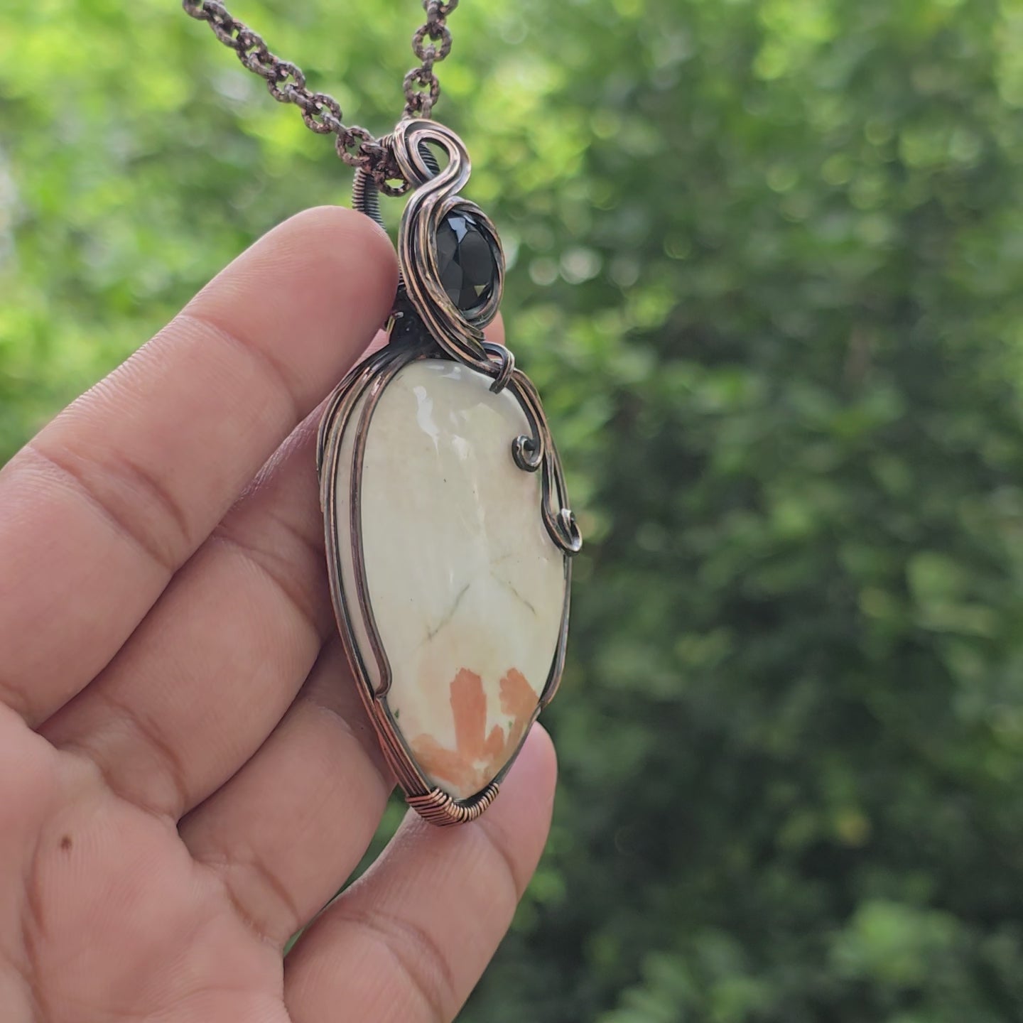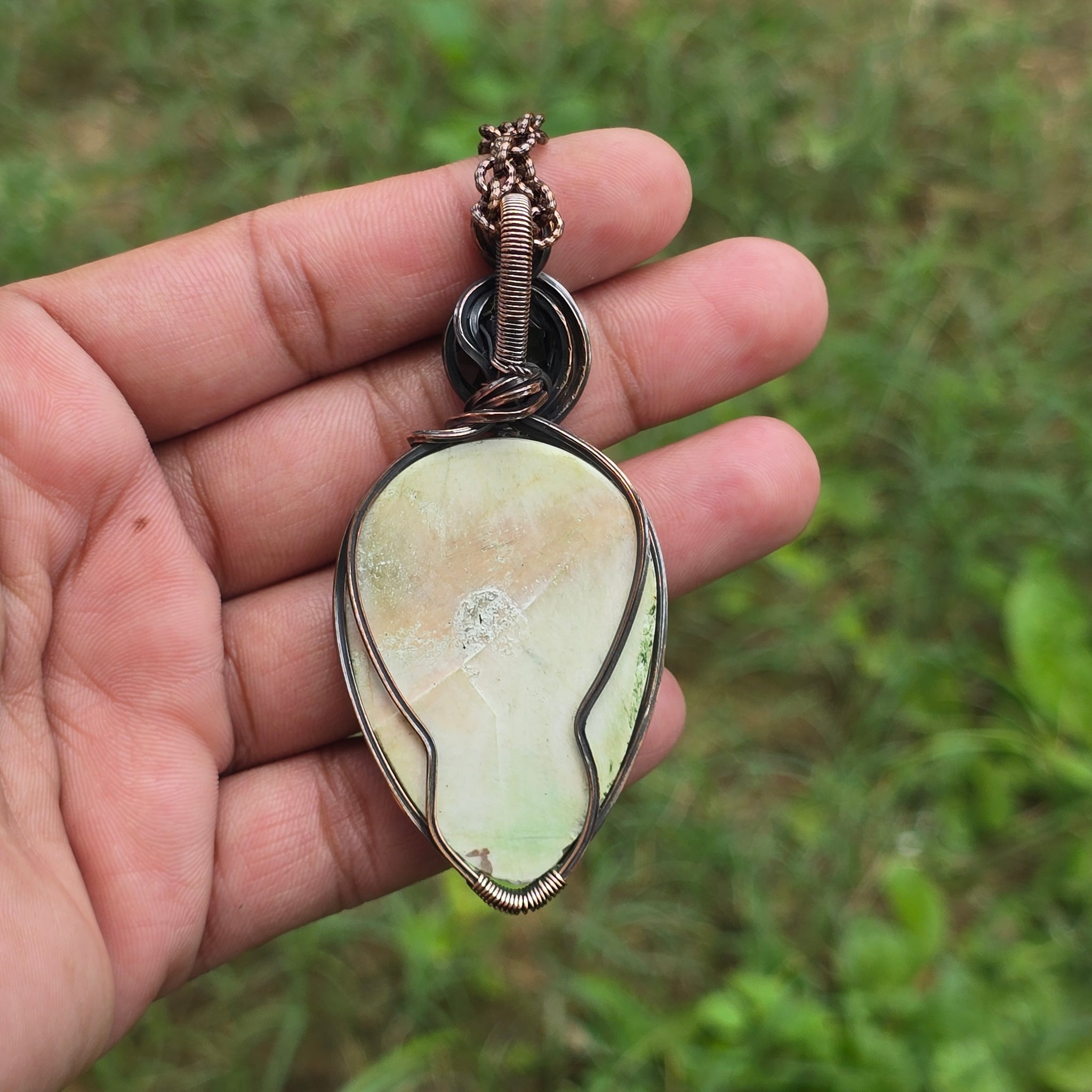 Scolecite Gemstone Handmade Copper Wire Wrap Chain Pendant 3.14"