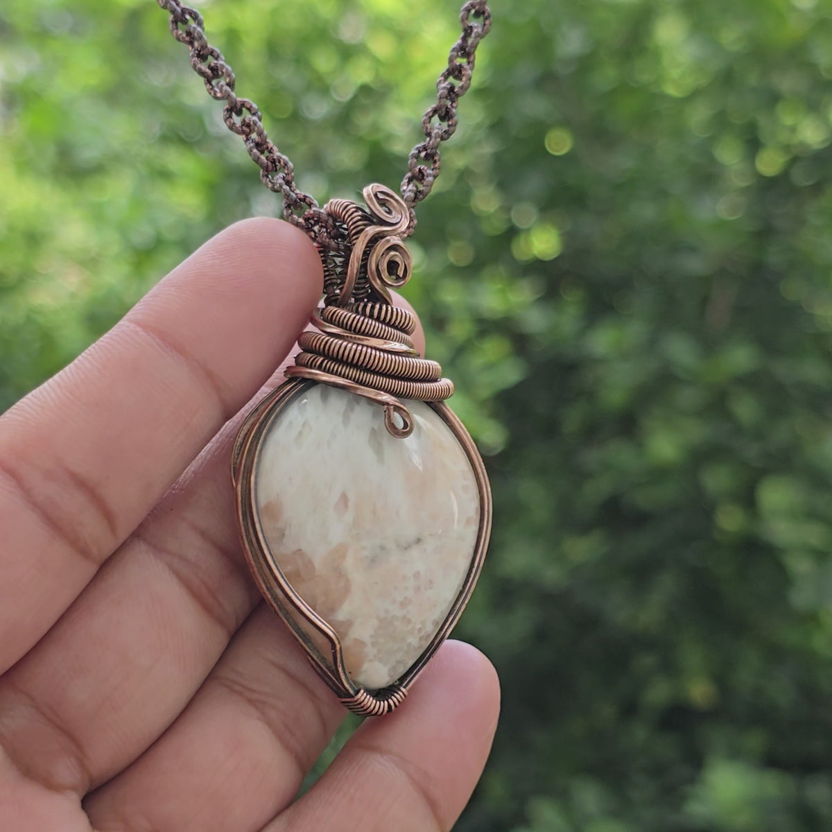 Sollecito Gemstone Handmade Copper Wire Wrap Chain Pendant 2.55"