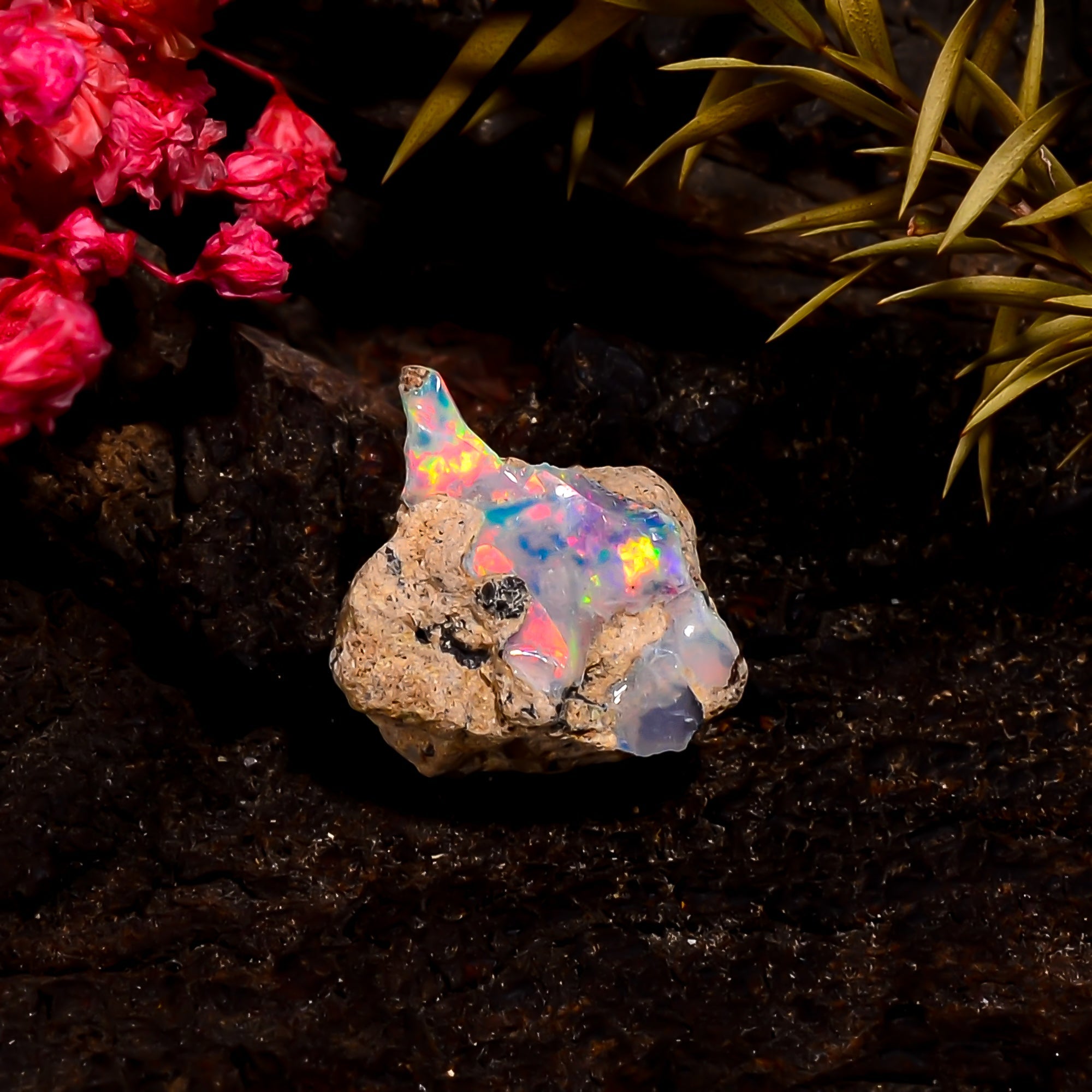 This authentic raw Ethiopian opal offers vibrant color play and natural brilliance, making it a valuable addition to any gemstone collection.